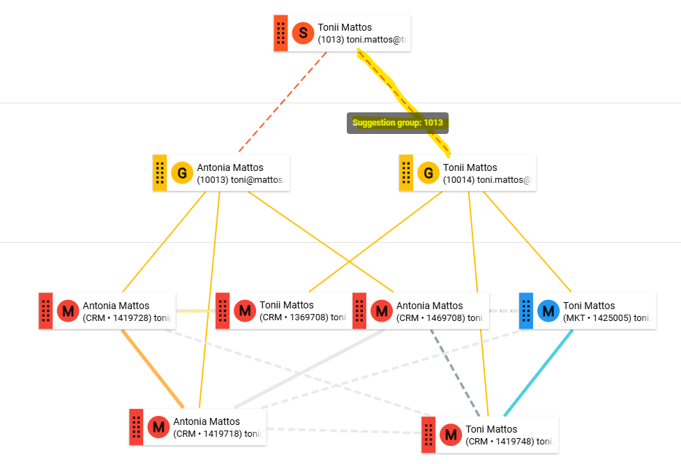 Can some explain what do the dotted lines and bold lines in Explain Record graph mean? And when is a master record shown connected to all other master records with dotted lines