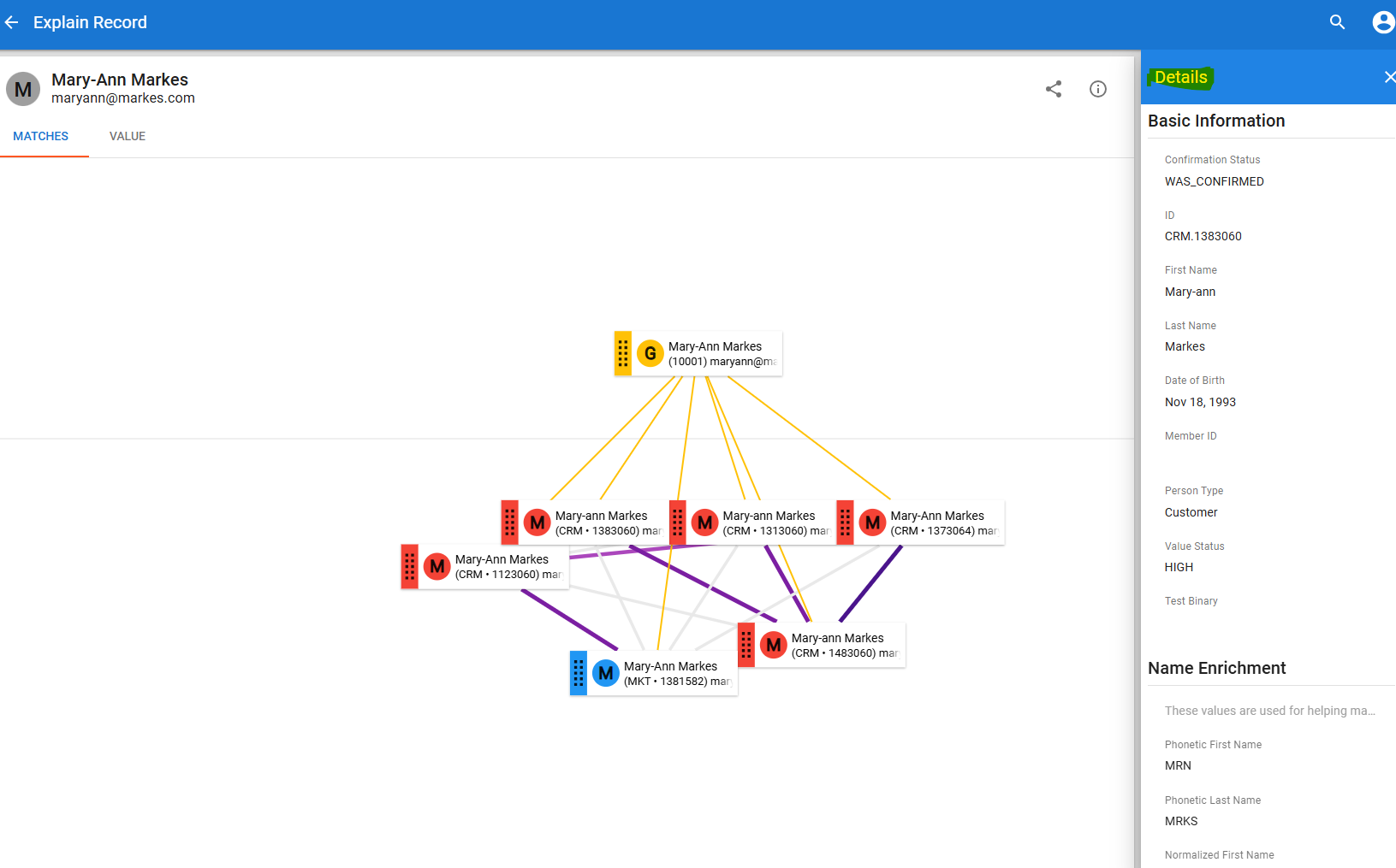 If so, you should be able to find all those information either in the below fields or from the explain record matches details section: