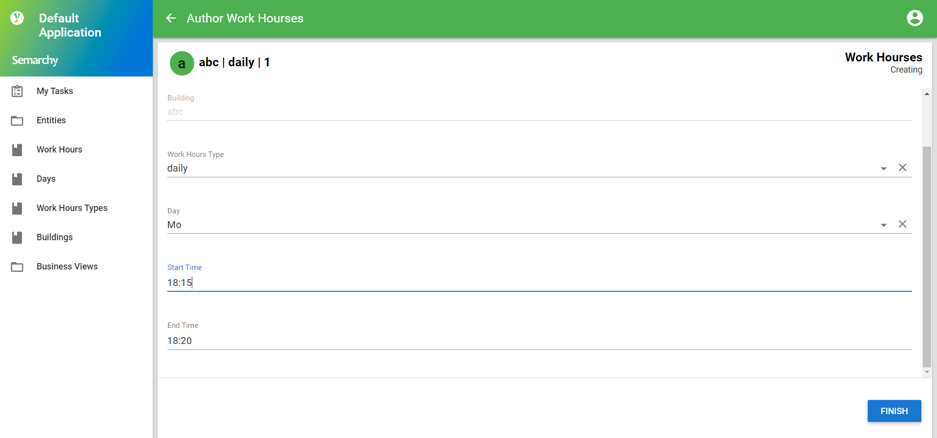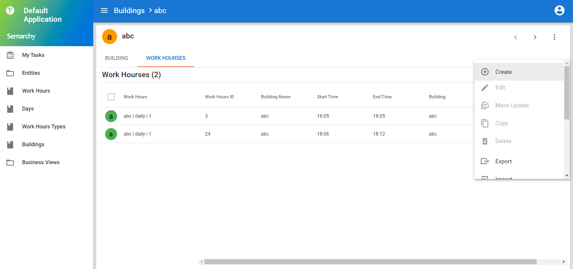 - Let's create new Work Hours: