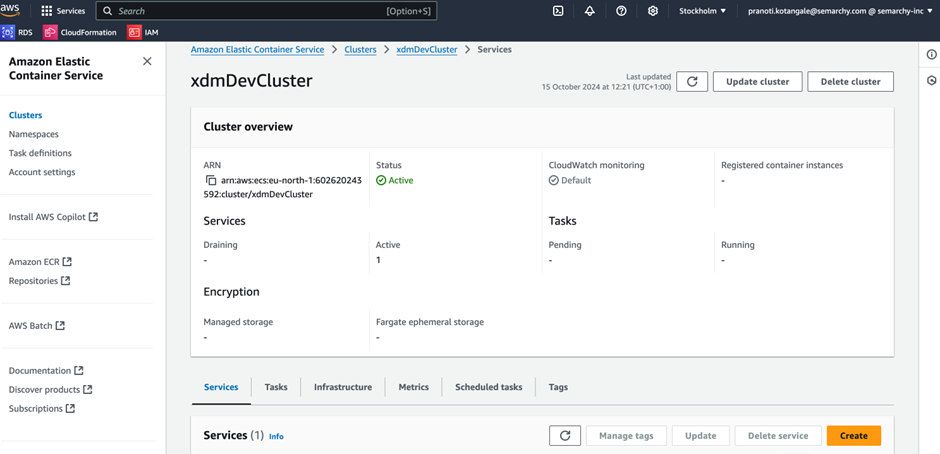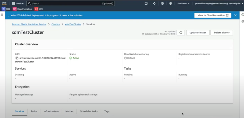 --tags Key=xdm-ecs4. Follow the cluster and instance creation progress using the AWS console and wait for their status to change to Available (estimated time: 10 minutes). Note the endpoint URLs for later: