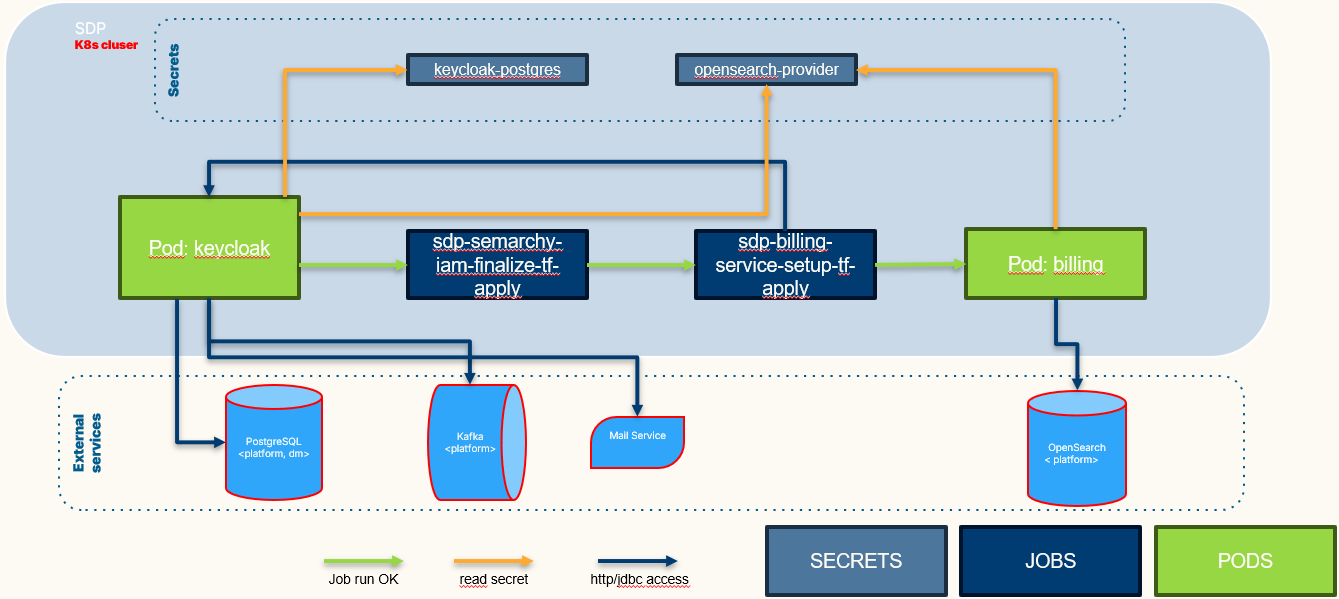 sdp-billing-service-setup-tf-apply | Set up access to billing and keycloak. Generates a keycloak client secret. Creates kubernetes_secret billing-keycloak. Creates Keycloak OpenID client billing_service. Creates a billing_admin role and maps it to the service account
