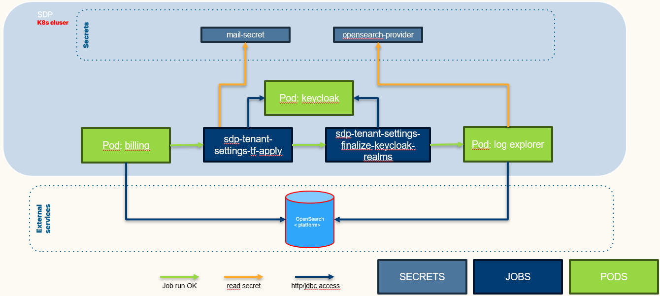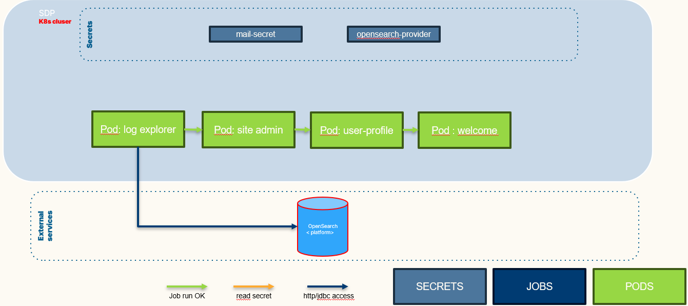 sdp-log-explorer-service-setup | | Opensearch started opensearch-provider secret Network to opensearch open User and credentials set in Opensearch